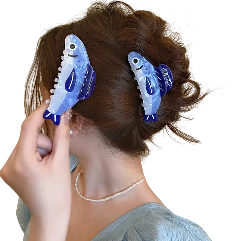 Pince à cheveux originale avec un design ludique en forme de poisson maintient fermement la coiffure, est légère, confortable à porter et idéale pour le stylisme quotidien et estival. Description complète
