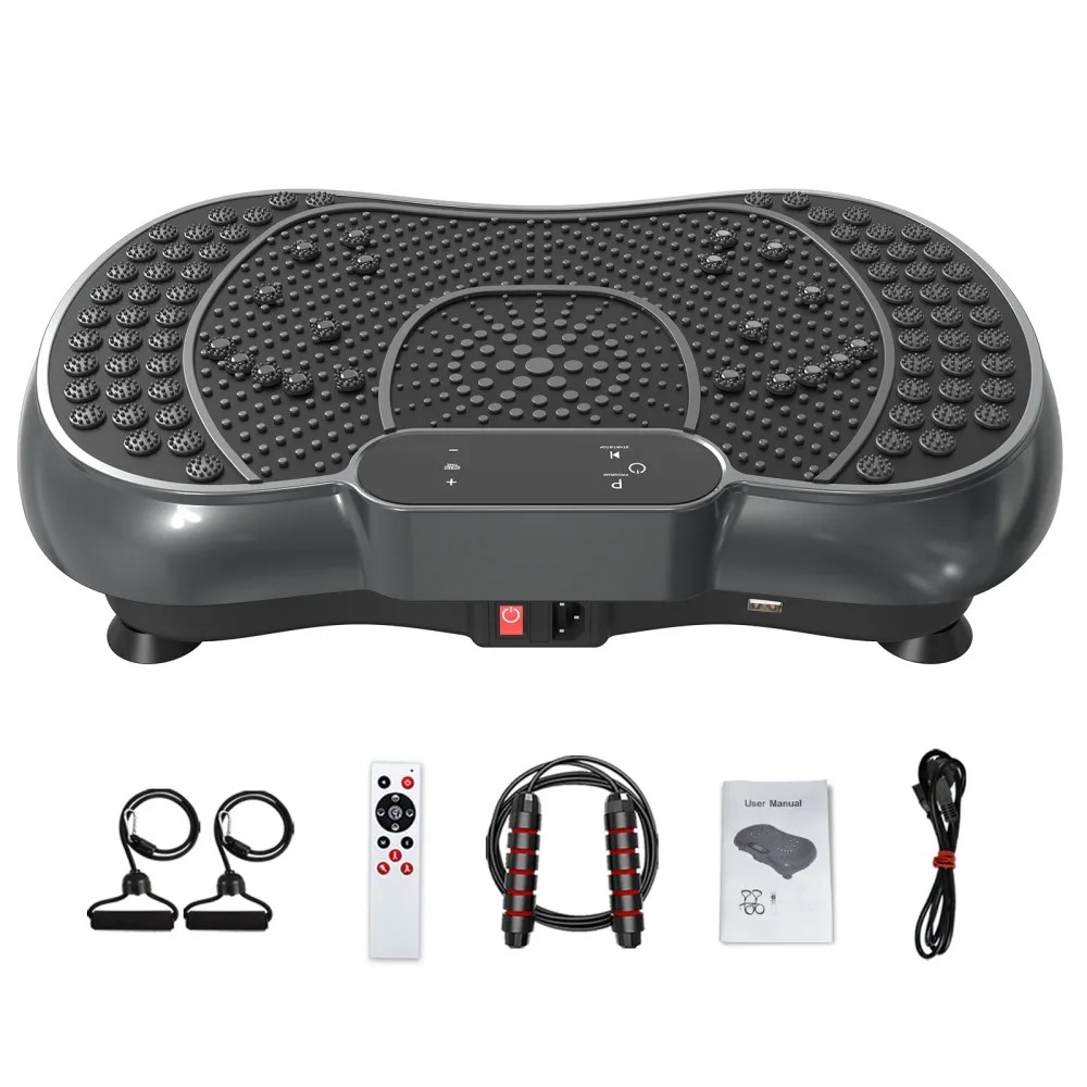 Plateforme vibrante avec accessoires 56×34,5×12 cm 99 niveaux d'intensité contrôle LED noire plateforme de fitness pour entraînement à domicile