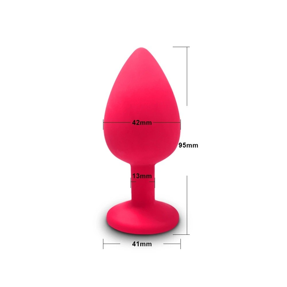 Plug anal en silicone rouge taille L avec pierre transparente amovible, idéal pour pimenter vos moments intimes avec un emballage discret