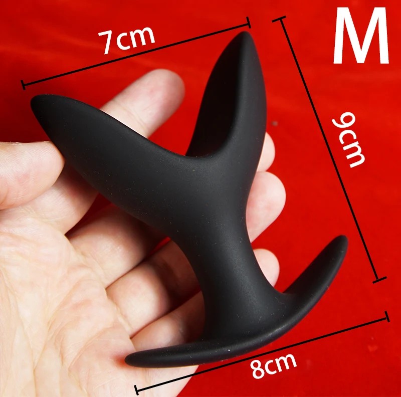 Plug anal en silicone taille M en forme de bec ouvert avec fixation d'ancrage design ergonomique matériau souple et flexible emballage discret