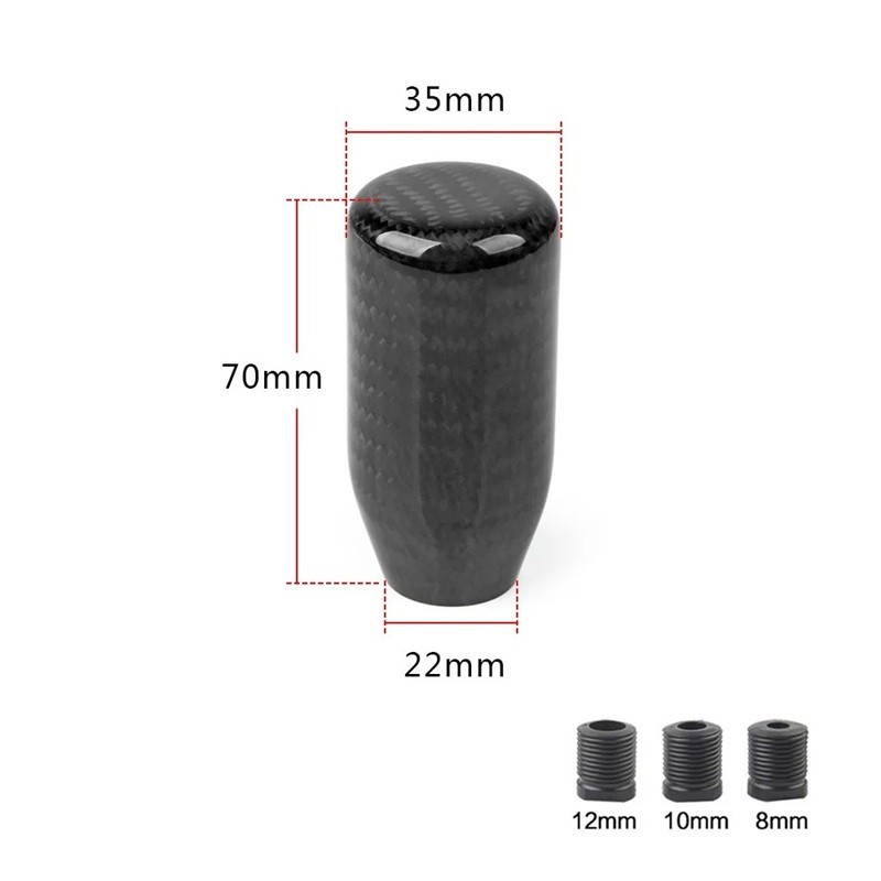 Poignée de levier de vitesses en ABS avec bande en carbone pour boîte manuelle, comprenant 3 adaptateurs pour une large compatibilité. Description complète