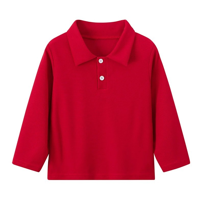 Polo enfant avec col et boutons T-shirt en polyester à manches longues T-shirt de sport uni pour garçons et filles
