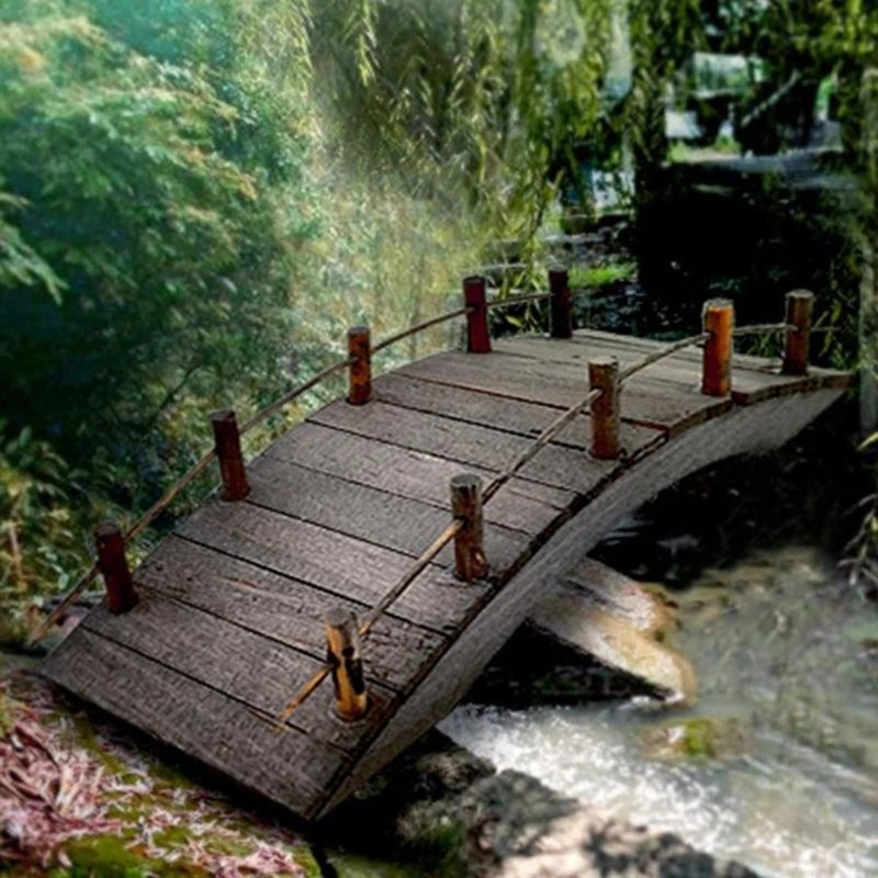 Ajoutez un détail authentique à votre scène miniature avec ce pont en bois en arc au look réaliste. Cet accessoire décoratif est idéal pour les maisons de poupées, les jardins miniatures et les dioramas créatifs. Grâce à la structure soignée du bois et à la délicate balustrade, le pont a un aspect très naturel. Il complétera parfaitement les étangs, les chemins ou les paysages de jardin à petite échelle.