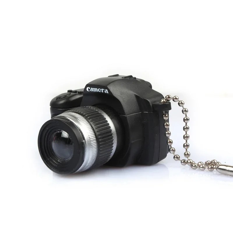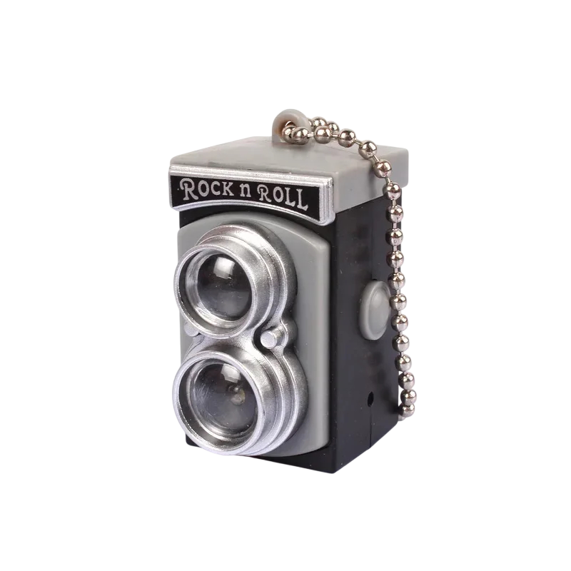 Le design imite fidèlement un appareil photo classique et apparaît moderne et stylé. Un anneau en métal solide assure une fixation sécurisée aux clés. Le produit allie fonction décorative et divertissement interactif, ce qui en fait un accessoire unique.