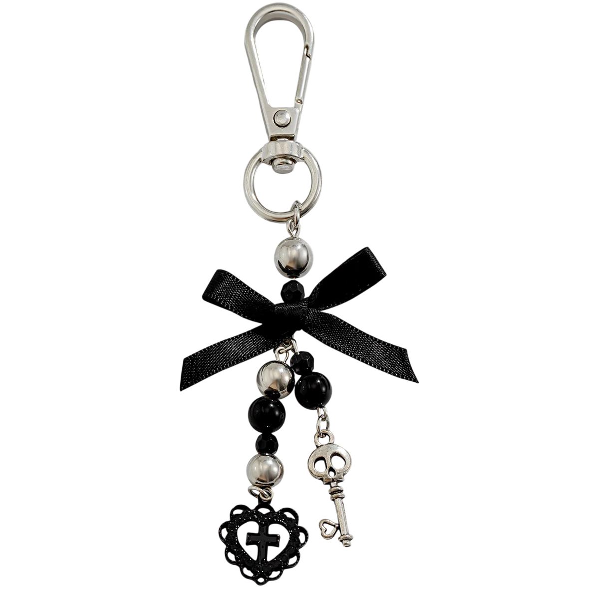 Accessoire élégant et marquant pour tous les amateurs d'esthétique sombre et de style alternatif. Ce porte-clés gothique attire le regard avec son noeud noir et son design détaillé en métal. Grâce à sa longueur, il est impossible à manquer tout en étant pratique pour un usage quotidien. Il complète parfaitement les clés, le sac à dos, le sac à main ou le petit sac urbain.
