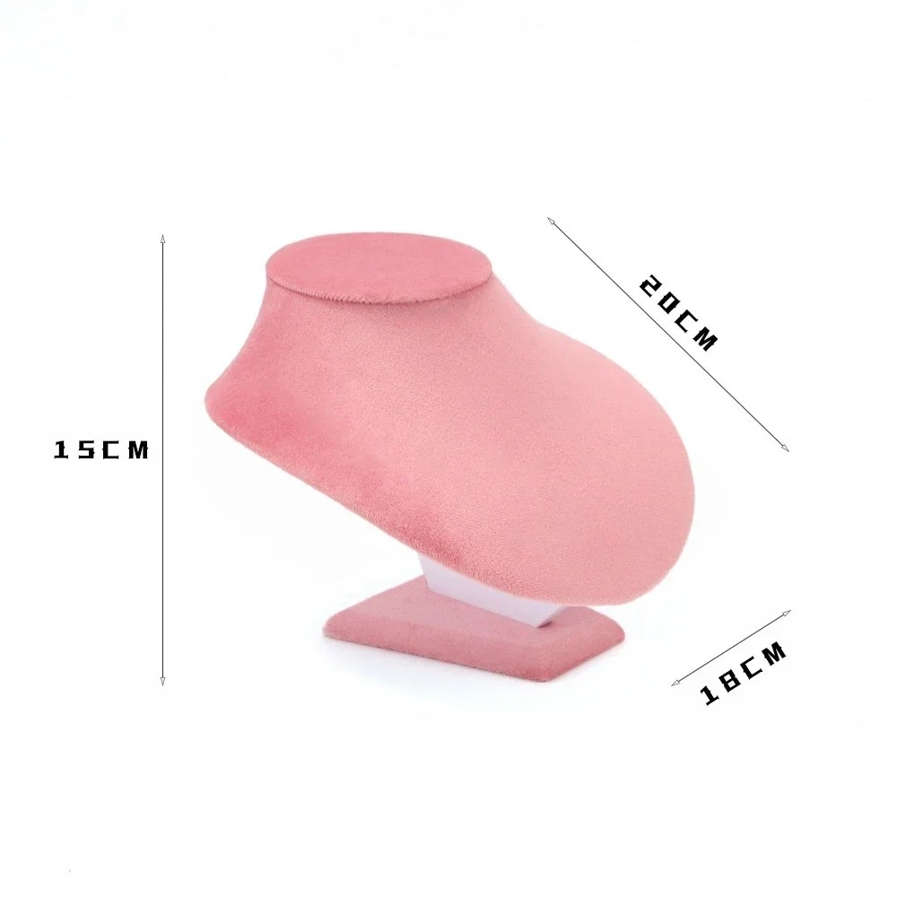 Porte-collier en velours 20 × 18 × 15 cm velours rose support de bijoux présentoir à colliers