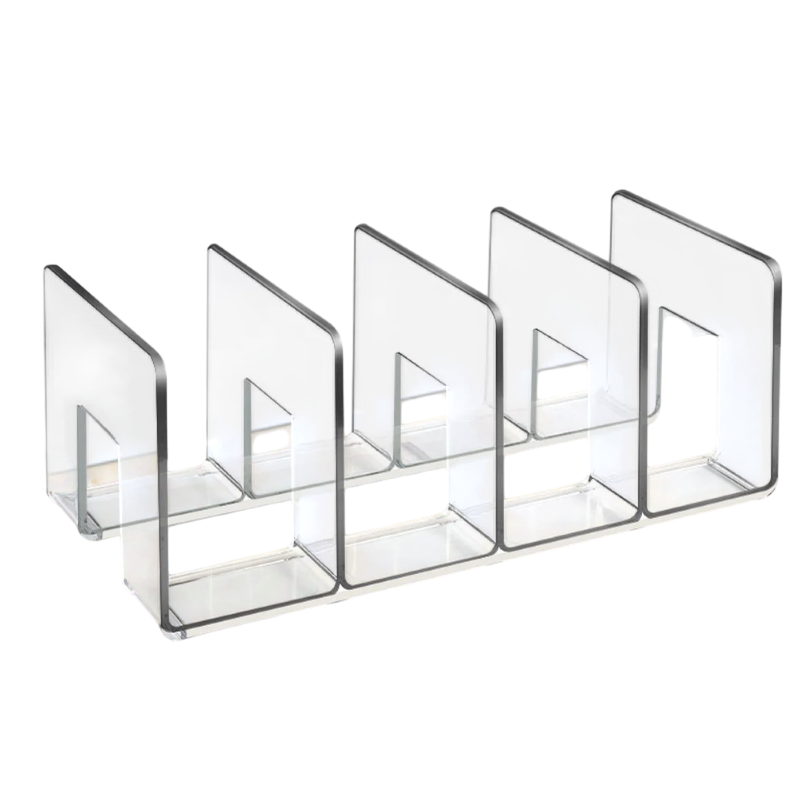 Le porte-livre en acrylique est une solution pratique pour organiser manuels, documents et autres imprimés sur le bureau. Grâce à la division en plusieurs compartiments, il permet un tri clair et un accès rapide aux différents matériaux. La construction est conçue pour maintenir les sections séparément et de manière stable. Le support est adapté aux étudiants ainsi qu'à un environnement de bureau, où il aide à maintenir l'ordre. Son design compact ne prend pas trop de place.