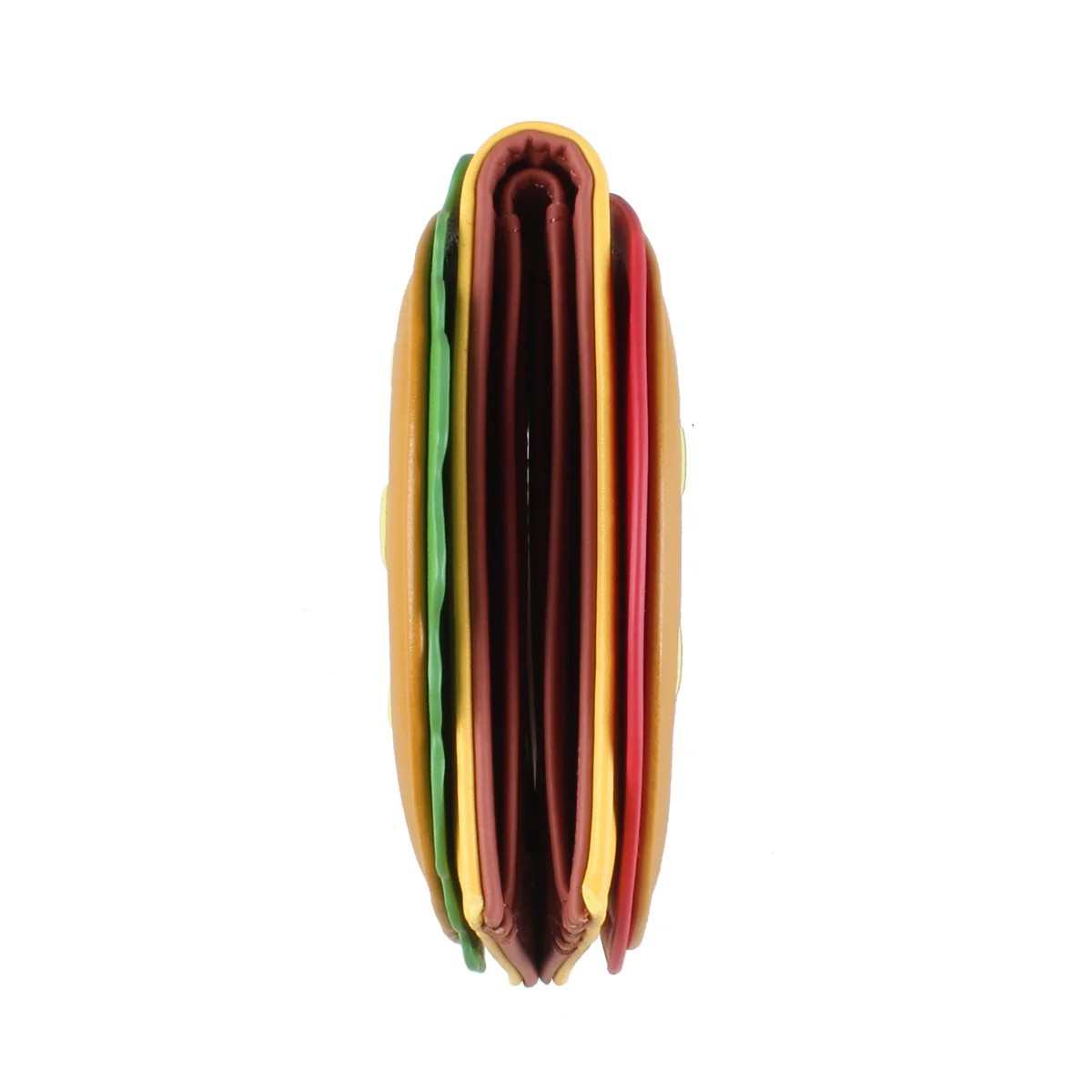 Portefeuille 3D en forme de hamburger 11,5 x 2,5 cm Mini portefeuille en simili cuir et polyester Accessoire original