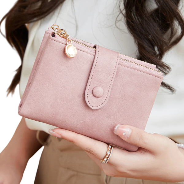 Portefeuille élégant pour femmes avec une construction dépliante offrant une organisation claire des cartes et des documents et des dimensions pratiques pour un usage quotidien. Description complète