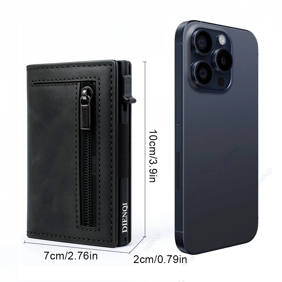 Portefeuille mini pour homme 10 x 7 x 2 cm Fermeture magnétique Protection RFID Alliage d'aluminium Poche zippée Cuir synthétique Description complète