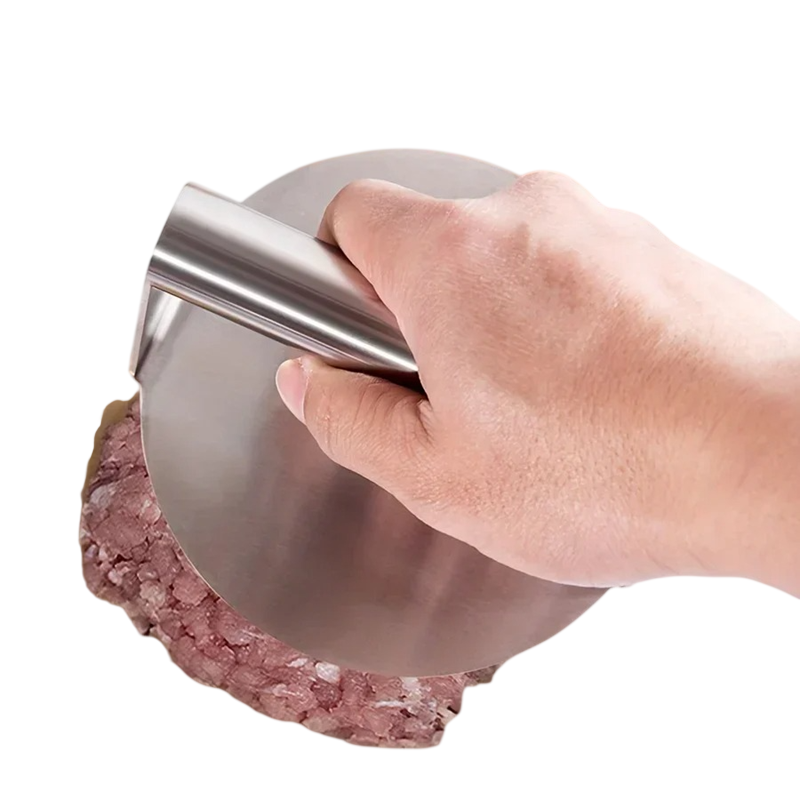 La presse est fabriquée en acier inoxydable durable, qui est solide, hygiénique et adapté à un usage quotidien en cuisine. Le matériau est également facile à nettoyer et résistant à la corrosion. Grâce à son design pratique, vous pouvez rapidement façonner des galettes de burger de même taille, ce qui garantit une cuisson uniforme de la viande.