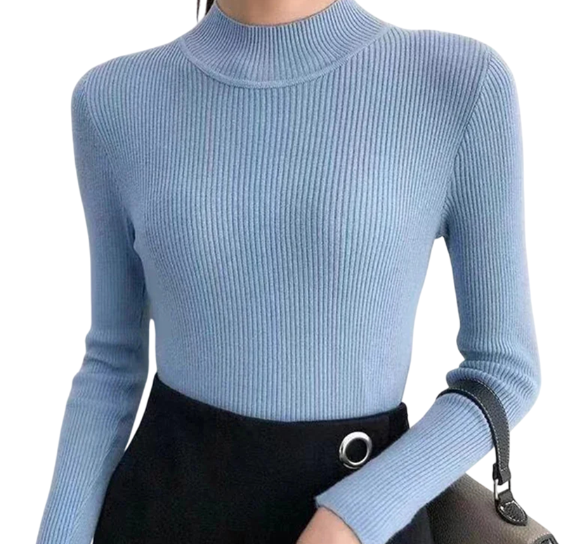 Pull en maille pour femme avec col roulé en coton et acrylique Pull uni chaud à manches longues Taille universelle pour l'automne et l'hiver