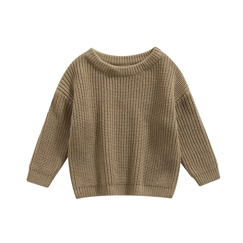Pull en tricot pour bébé Haut ample à manches longues d'automne et d'hiver Pull uni en acrylique et coton pour filles et garçons