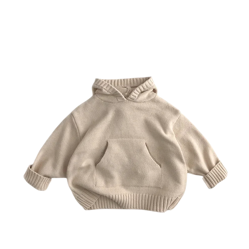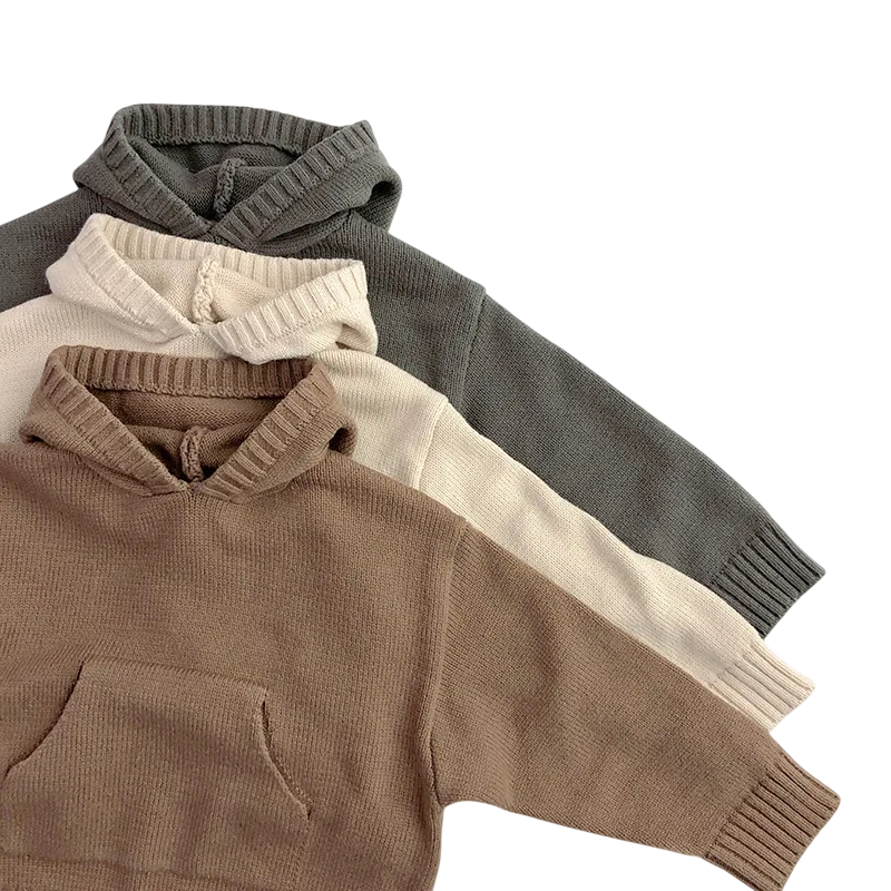 Pull en tricot pour enfants avec capuche 12M–6Y Veste unie douce avec poche avant Style décontracté pour garçons et filles Haut chaud d'automne et d'hiver Différentes couleurs