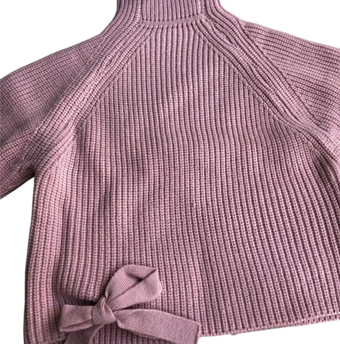 Mignon pull pour enfants avec col roulé et nœud sur le côté en acrylique doux, idéal pour le printemps, pour garçons et filles, plusieurs couleurs. Description complète