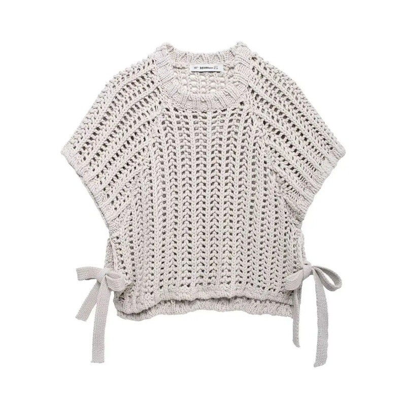 Top en tricot stylé à manches courtes avec lien sur les côtés. Pièce confortable, élégante et facile à combiner pour des tenues quotidiennes et estivales. Description complète