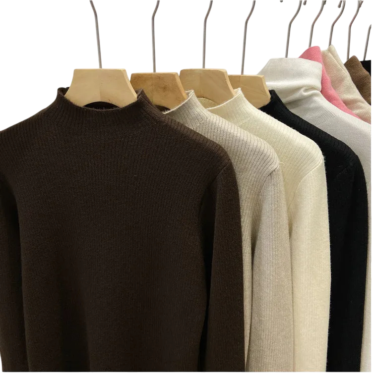- Col roulé qui protège le cou du froid et ajoute du style