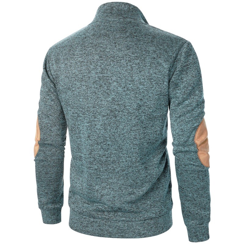 - Empiècements marron aux coudes comme élément pratique et décoratif