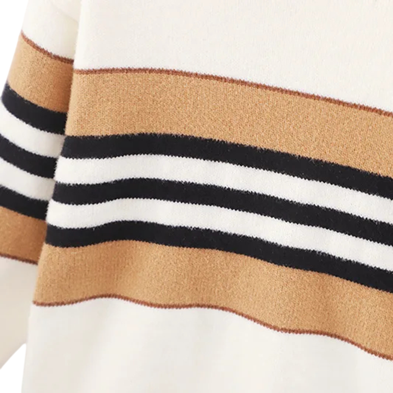 Pull stylé pour enfants avec des rayures colorées et un col rond, fabriqué en polyester doux et en acétate, idéal pour les jours frais. Description complète