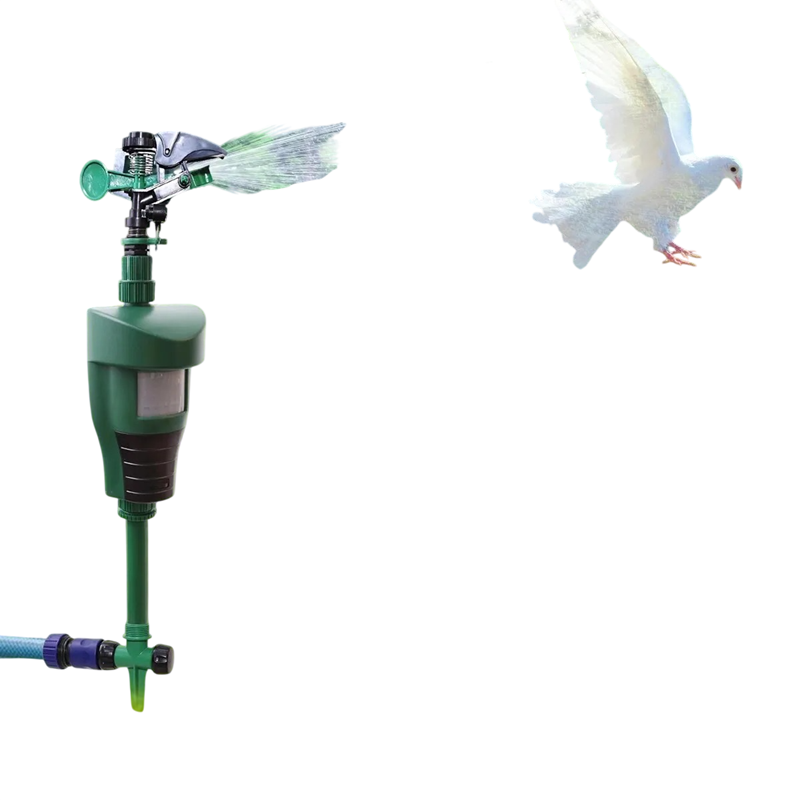 L'appareil est conçu pour activer la pulvérisation d'eau après avoir détecté un mouvement. Le pulvérisateur pulvérise de l'eau dans toutes les directions, couvrant ainsi un espace plus large et réagissant au mouvement autour de l'appareil.