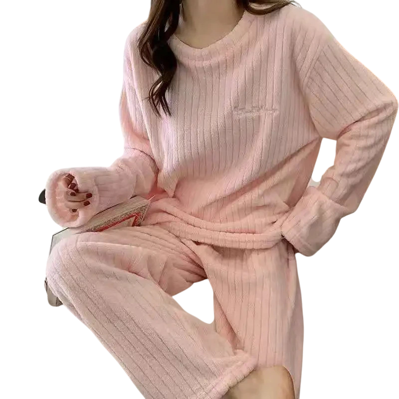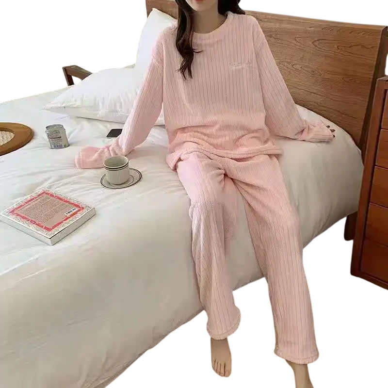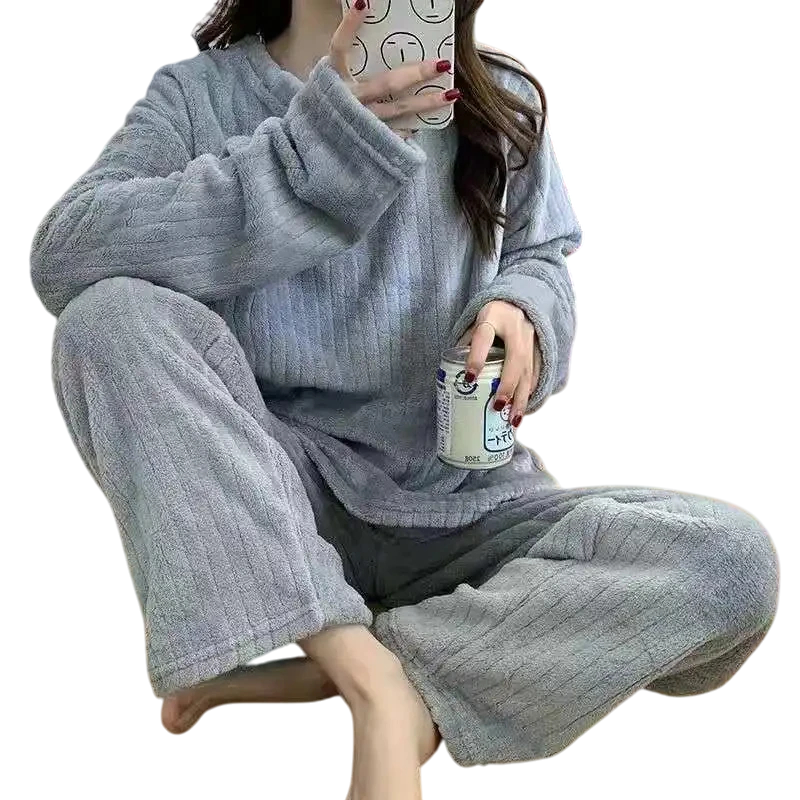 Page d’accueil Page d’accueil Vêtements et accessoires Vêtements et accessoires femme Lingerie de nuit femme Pyjamas femme Pyjama d'hiver en peluche pour femmes en polyester et spandex Ensemble uni chaud avec manches longues et pantalons Taille universelle