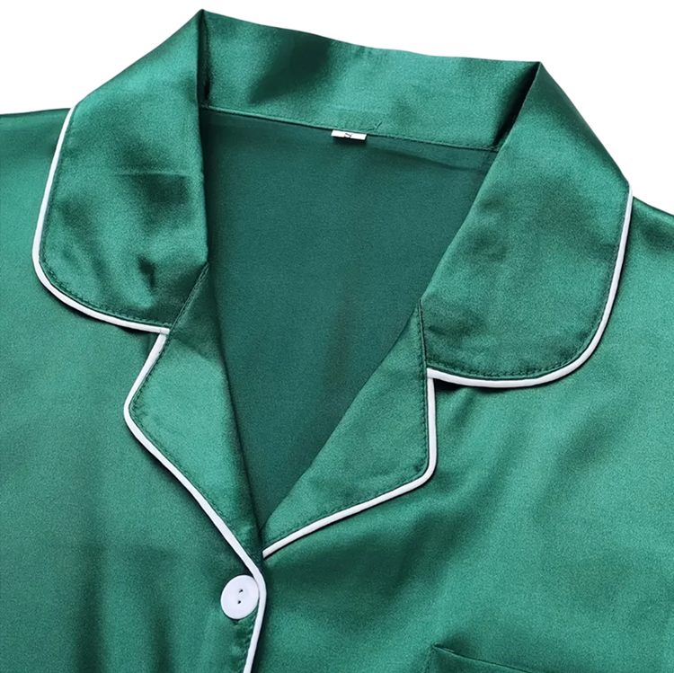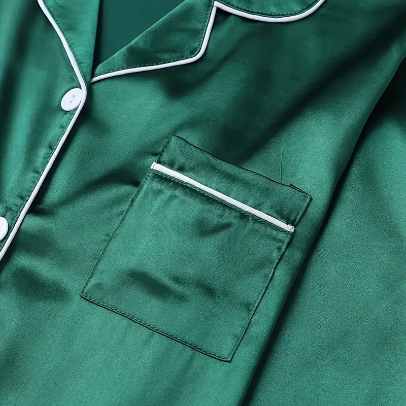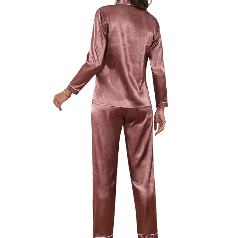 Cet élégant ensemble de pyjama est destiné aux femmes qui souhaitent allier confort et style dans une seule tenue. Le matériau en velours de polyester et spandex offre une sensation exceptionnellement agréable sur la peau et donne une impression de luxe. La fermeture à boutons avec col classique apporte sophistication et la poche sur la poitrine un détail pratique. La taille élastique des pantalons assure une liberté de mouvement et un confort tout au long de la soirée. Grâce à sa coupe élégante et sa surface brillante, cet ensemble est idéal non seulement pour dormir, mais aussi comme vêtement d'intérieur stylé. C'est un cadeau parfait pour chaque femme qui apprécie la qualité, l'élégance et le confort.