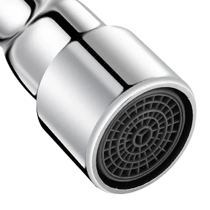 Le bout de la rallonge est équipé d'une buse rotative à 360°, qui permet de diriger le jet d'eau dans toutes les directions. Cela permet de rediriger facilement l'eau lors du rinçage de la vaisselle, du nettoyage de l'évier ou du remplissage de récipients.