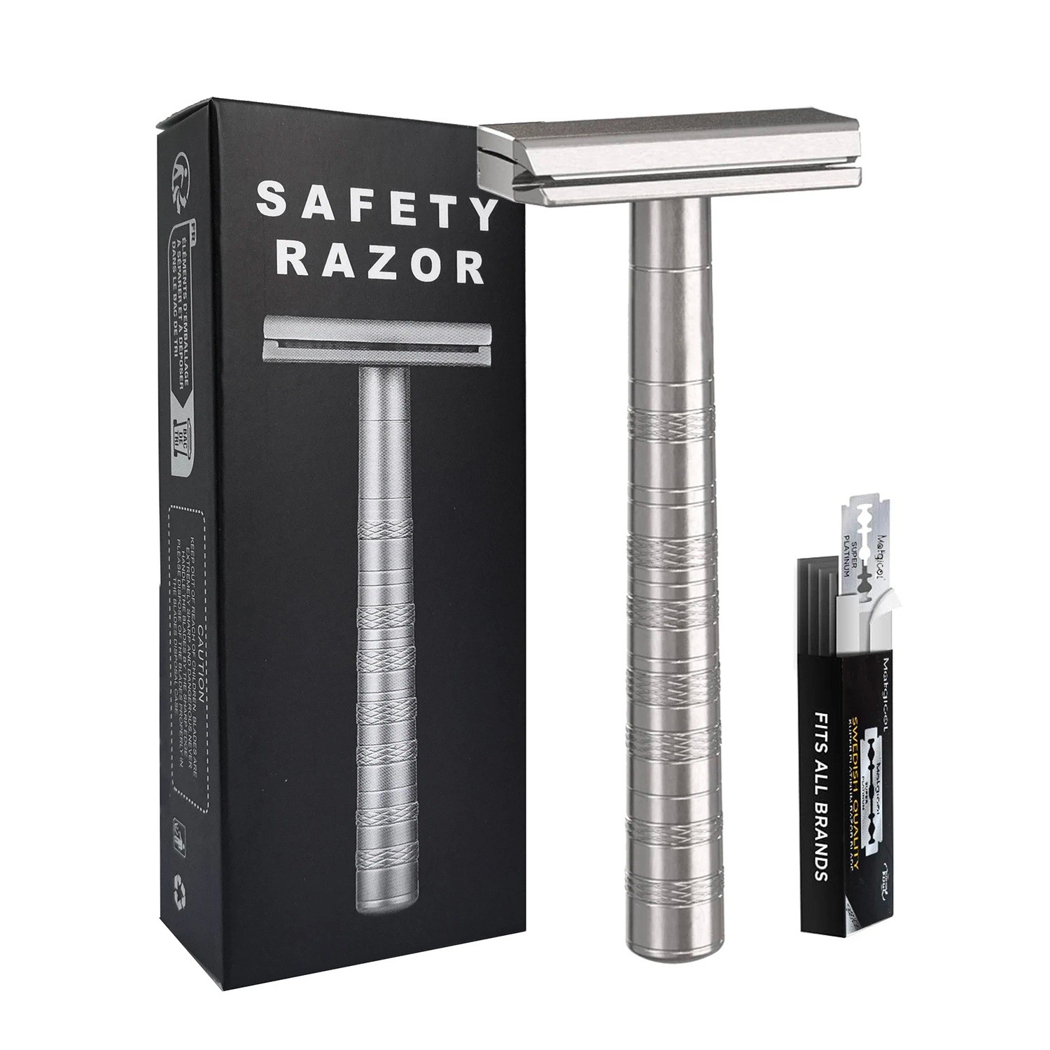 Page d’accueil Page d’accueil Santé et Beauté Épilation et rasage Rasoirs, lames et blaireaux Rasoir à lame unique 10,5 x 4,4 cm Alliage d'aluminium 5 lames de rechange Rasoir de sécurité manuel pour hommes et femmes