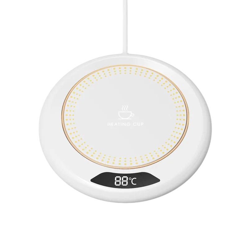 Ce réchauffeur de boissons de bureau est un assistant fiable pour quiconque souhaite savourer du café, du thé, du chocolat chaud ou d'autres boissons chaudes à la température idéale pendant une longue période. Il répartit uniformément la chaleur sur toute la surface de chauffage d'un diamètre de 8,8 cm et grâce à ses dimensions compactes de 11,2 x 11,2 x 2,4 cm, il s'adapte confortablement sur un bureau, une table de nuit ou dans un bureau. Trois niveaux de mode de température – bas, moyen et élevé – permettent d'ajuster la température de la boisson selon les besoins actuels, les modes étant facilement sélectionnables par le bouton tactile SET. Arrêt automatique en l'absence de tasse augmente la sécurité et économise de l'énergie, ce que vous apprécierez surtout lors d'une utilisation tout au long de la journée. L'alimentation USB 5 V / 2 A permet de le connecter à un chargeur, un ordinateur portable ou une batterie externe.