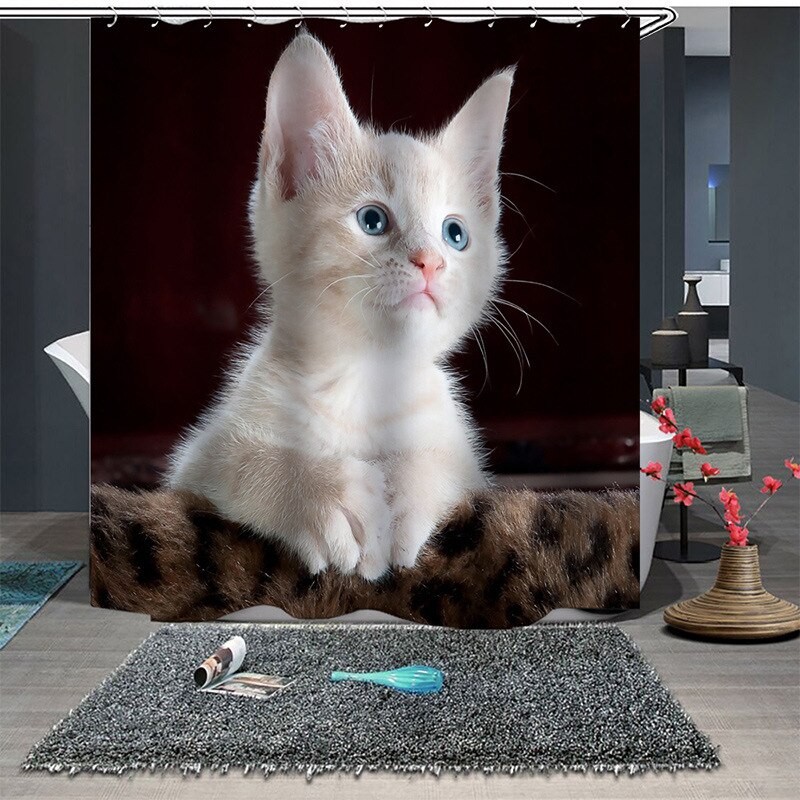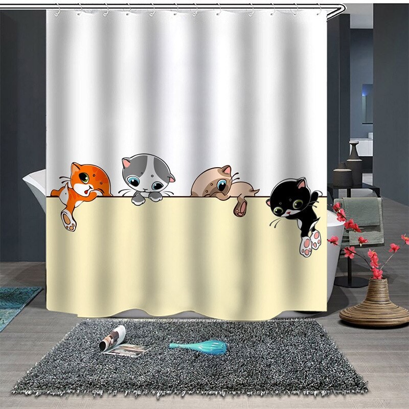 Rideau de douche avec un chat