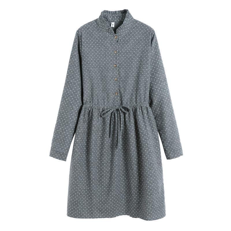 Robe à pois mignonne avec des manches longues et un col de style chemise.