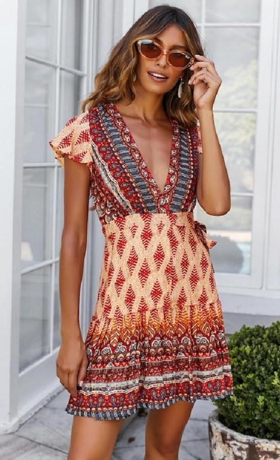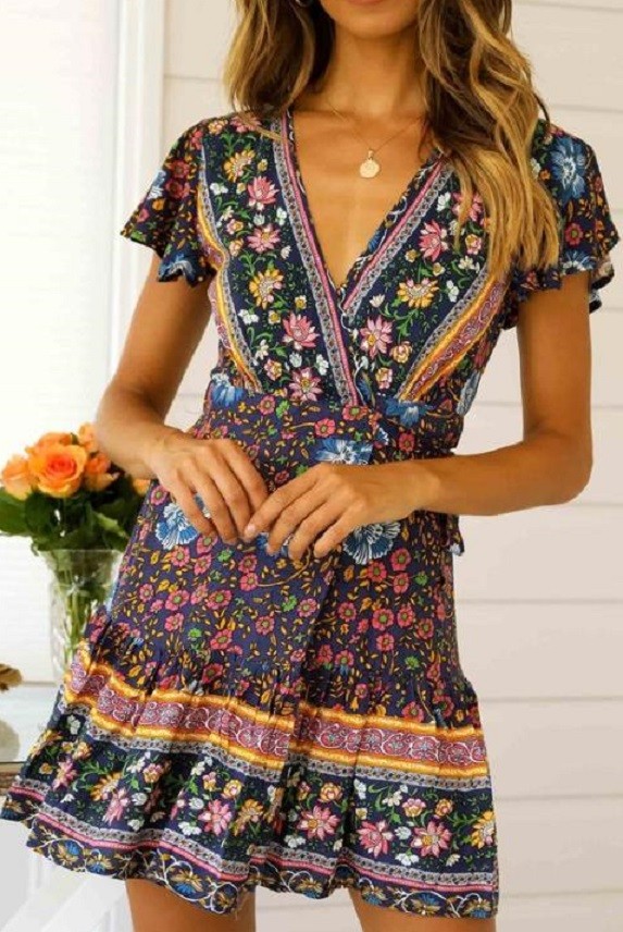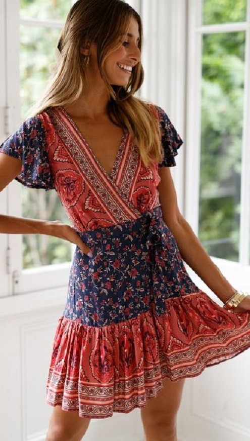 Magnifique robe d'été romantique avec une jupe à volants et des manches.