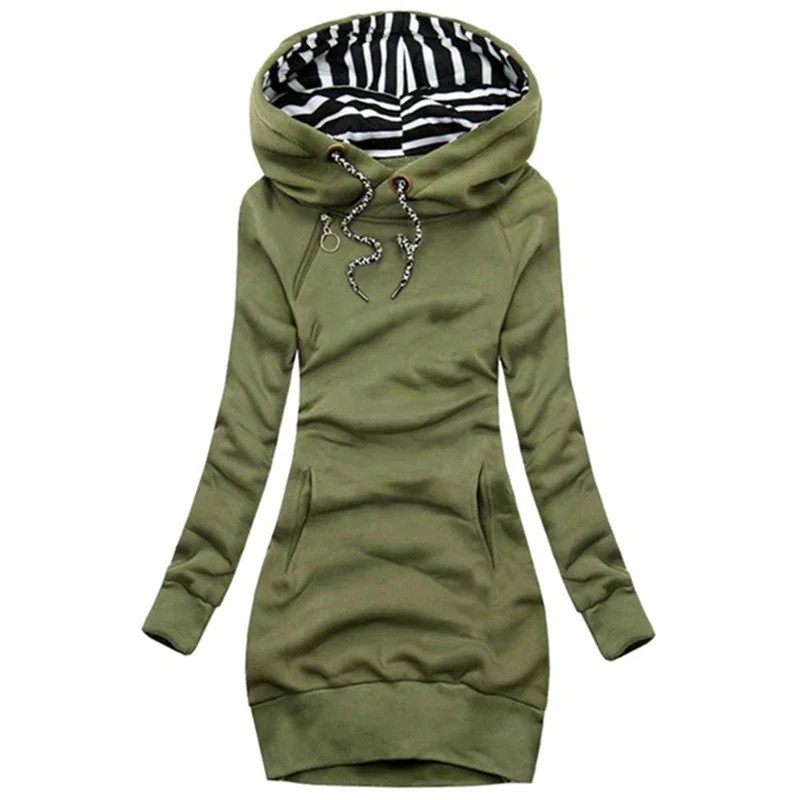 Robe en sweat confortable à capuche, manches longues et pratique poche kangourou – un choix idéal pour les journées décontractées. Description complète
