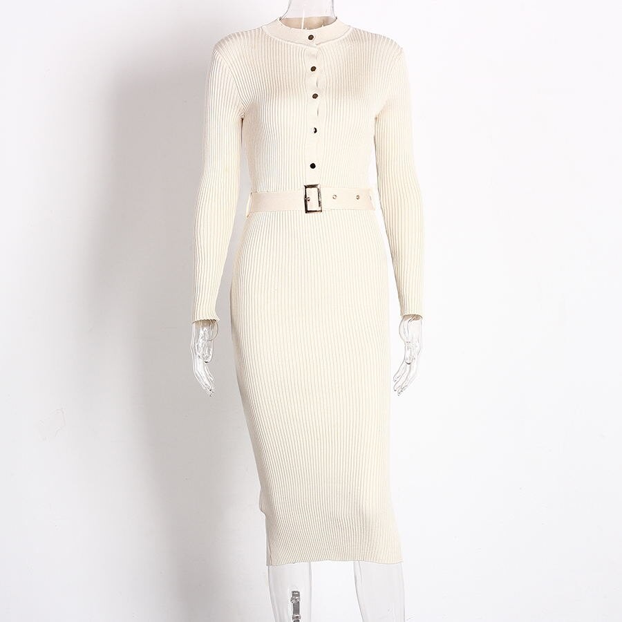 Robe en tricot à manches longues pour femmes avec une ceinture à la mode.