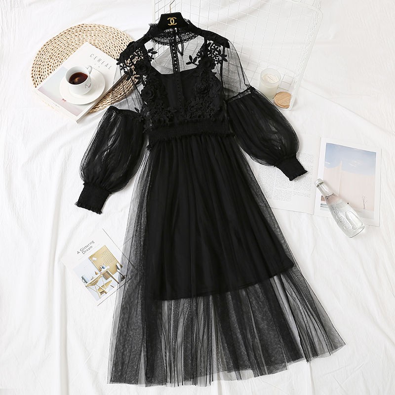 Magnifique robe femme avec de longues manches bouffantes.