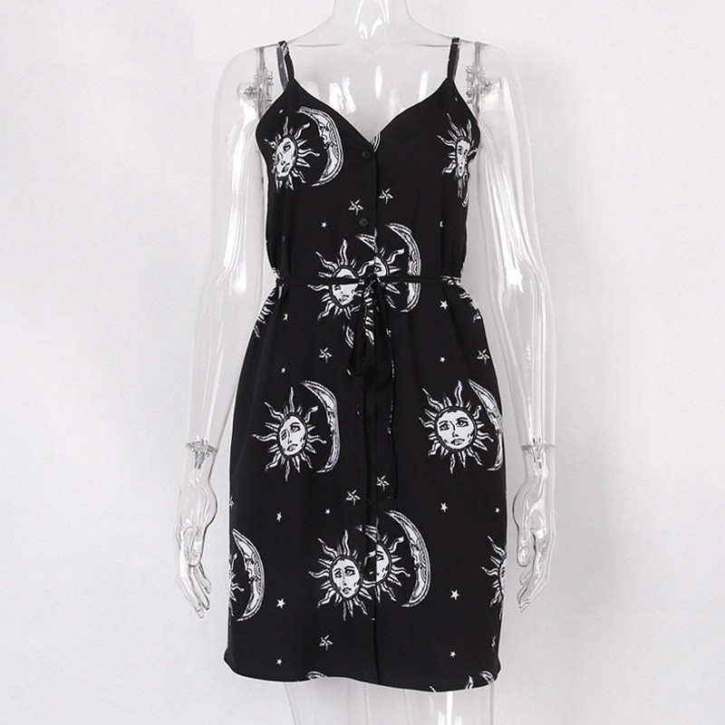 Robe noire à boutons pour femmes dans le style gothique populaire.