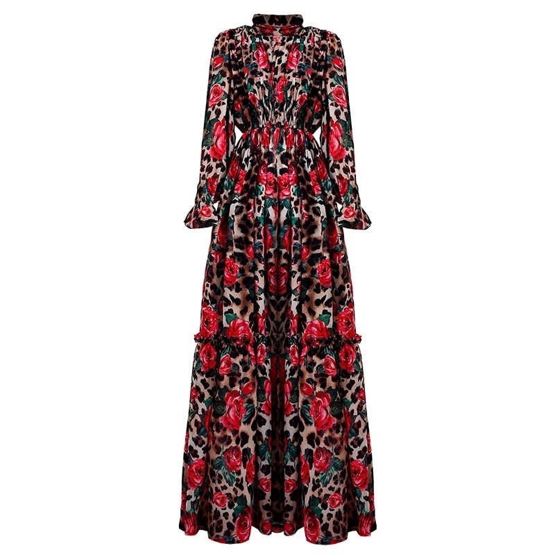 Décolleté traditionnel avec col montant et longues manches bouffantes.