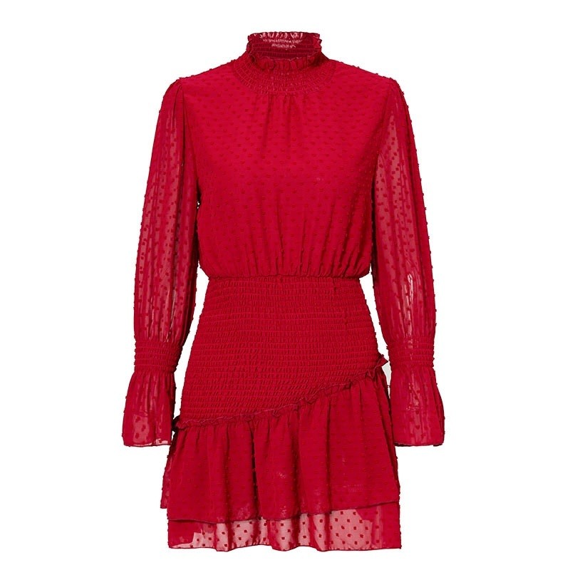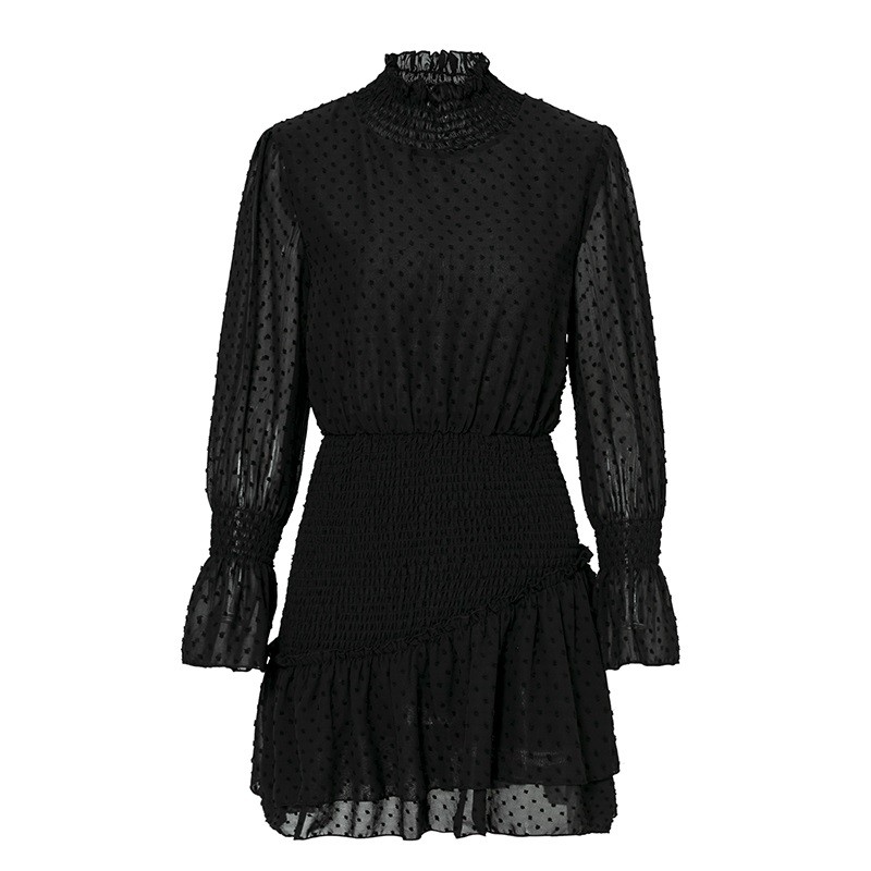 Col montant élégant et longueur mini raffinée.