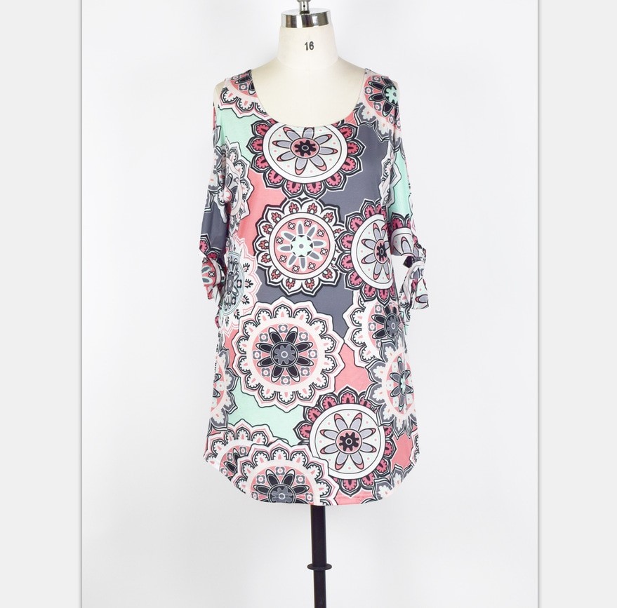 Décolleté rond élégant et coupe tunique.
