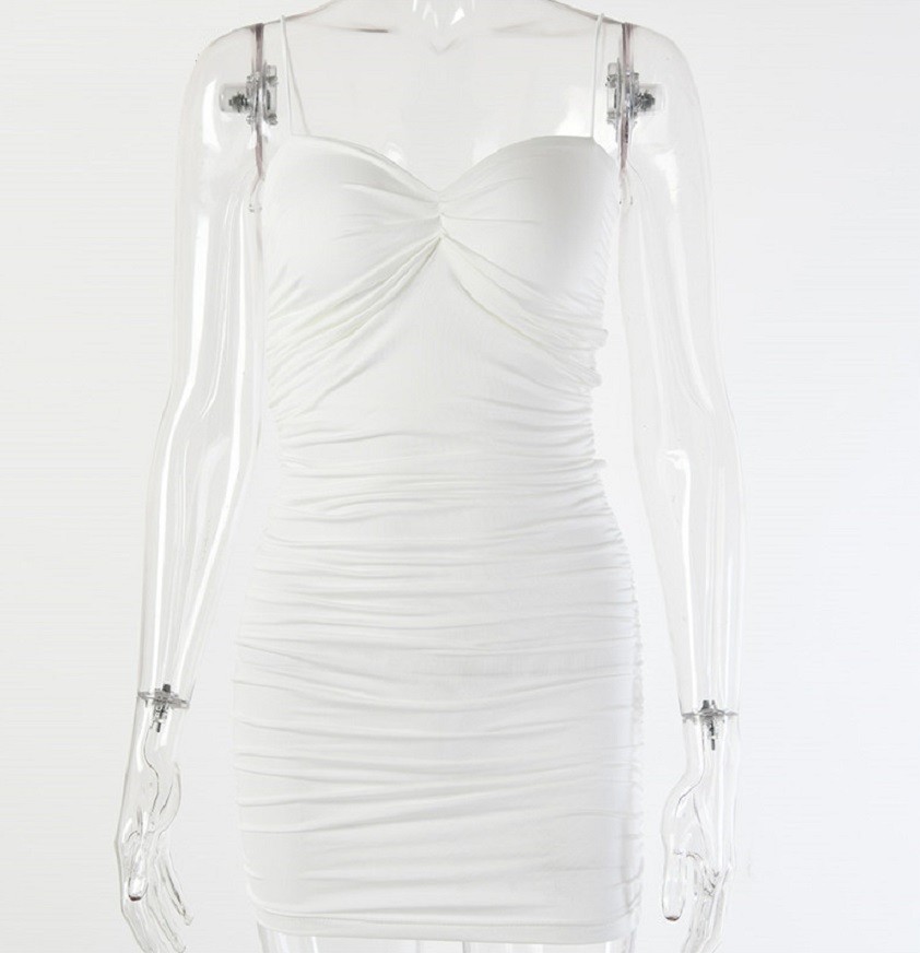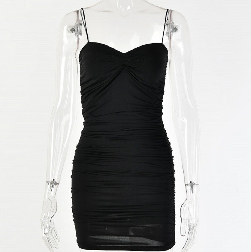 Robe mini sexy d'été pour femmes avec des bretelles spaghetti.