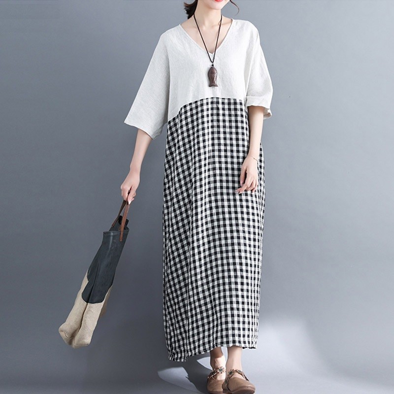 Robe tunique avec jupe à carreaux