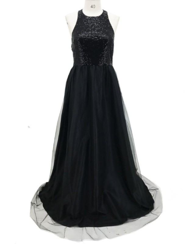 Haut en sequins, jupe supérieure en tulle délicat.