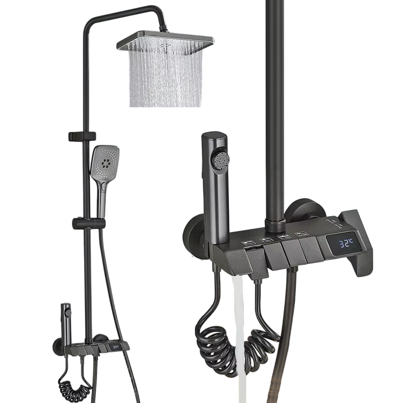 L'écran numérique affiche la température actuelle de l'eau, ce qui garantit une utilisation sécurisée et élimine le risque de brûlures. L'ensemble du système est fabriqué à partir de matériaux de qualité, résistants à la corrosion et au calcaire, et grâce à un système de montage universel, l'installation est simple et rapide. Cet ensemble de douche est le choix idéal pour ceux qui souhaitent allier luxe, fonctionnalité et design moderne.
