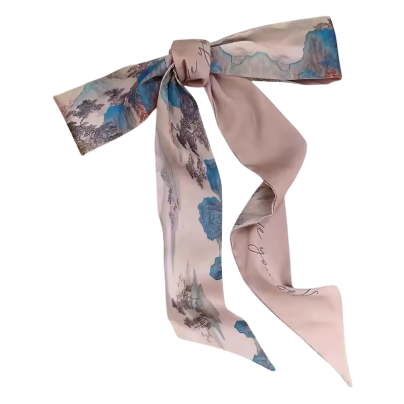 Foulard étroit 6 × 90 cm à imprimé, utilisé comme ruban pour les cheveux, bandeau et décoration de sac. Accessoire léger adapté toute l'année. Description complète