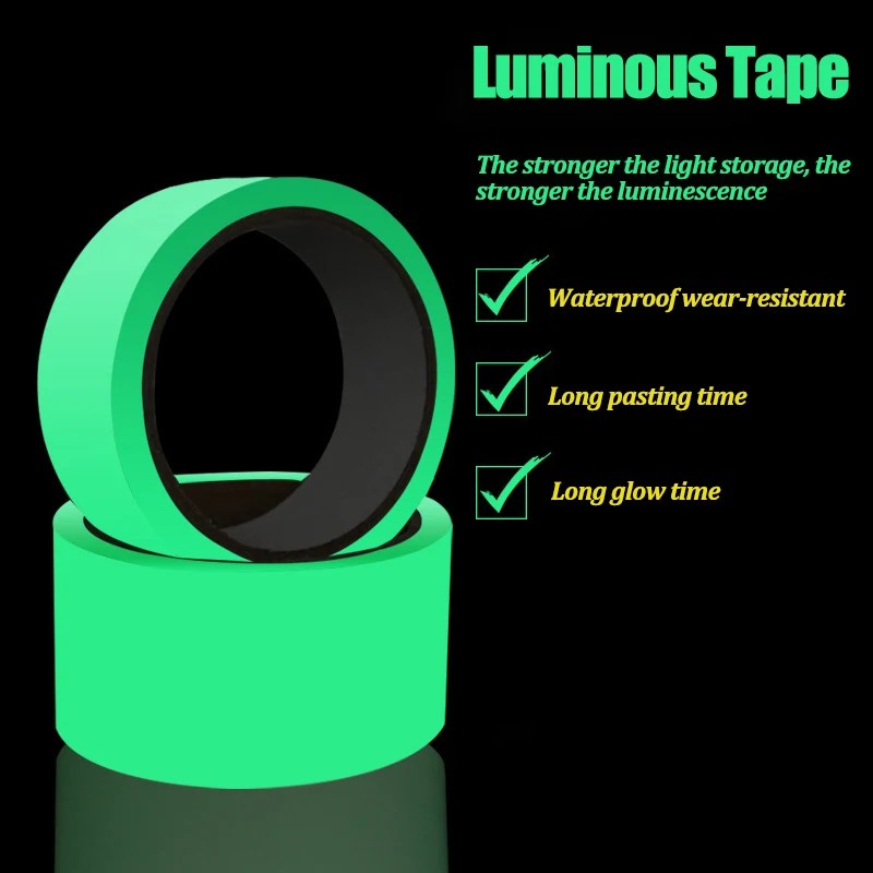 Ruban fluorescent autocollant lumineux dans l'obscurité, idéal pour les décorations domestiques, les besoins de sécurité ou les fêtes, avec une composition écologique et non toxique. Description complète