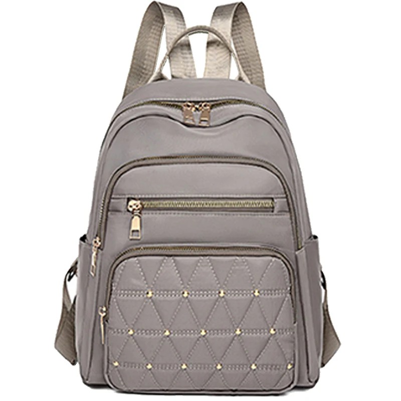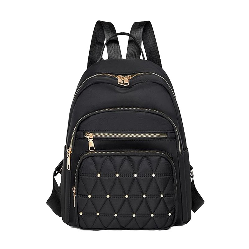 Sac à dos de mode pour femmes en nylon et polyester avec 4 poches zippées, poches latérales pour boissons, grande capacité, style décontracté, strass