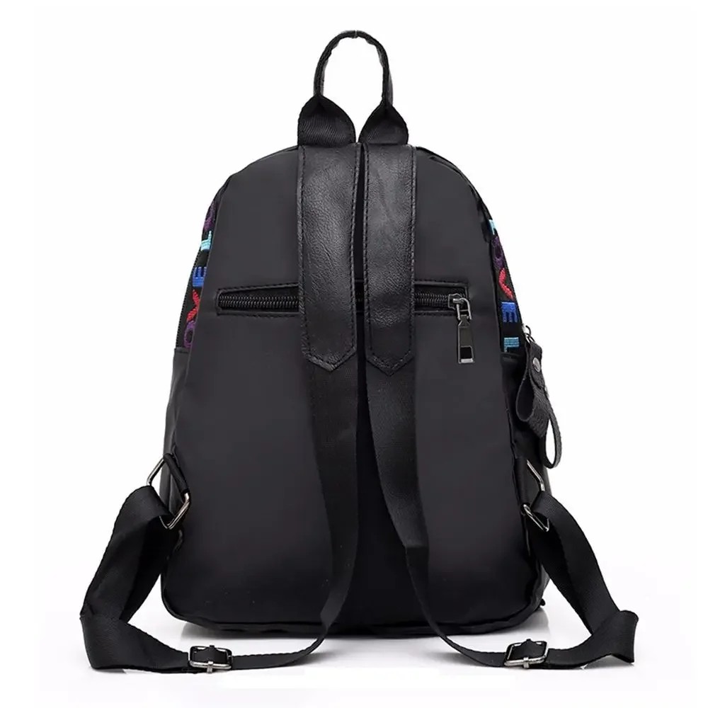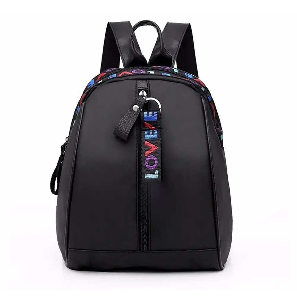 Sac à dos mini pour femmes 24 x 14 x 27 cm en polyester Oxford Noir avec inscriptions LOVE en ligne Plusieurs poches zippées