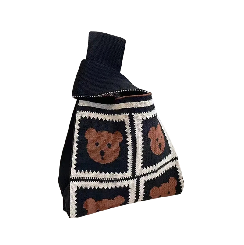 Sac à main en tricot pour femmes avec motif et doublure 20x35 cm polyester coton sac à main pour un usage quotidien et des affaires