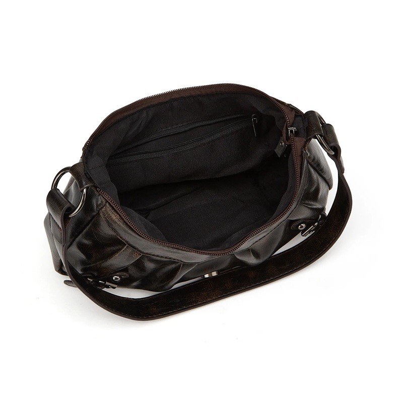 L'espace intérieur est conçu pour permettre un rangement clair des effets personnels. La doublure en polyester contribue à mieux façonner le sac et à protéger les objets rangés. Grâce à sa construction légère, le sac est confortable même lors d'une utilisation prolongée. La conception allongée facilite l'organisation du contenu sans écrasement inutile. Le sac convient aux femmes qui souhaitent souligner leur style personnel tout en conservant la praticité.