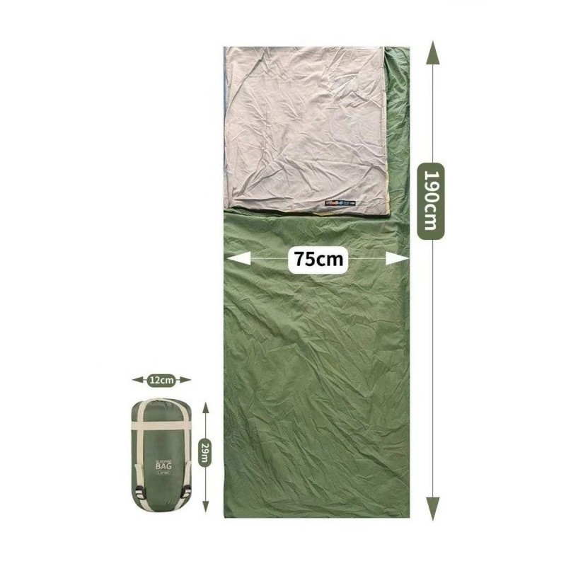 Sac de couchage 190 x 75 cm, 8-15 degrés, emballage 29 x 12 cm, couleur verte, coton et nylon, idéal pour le camping au printemps et en automne